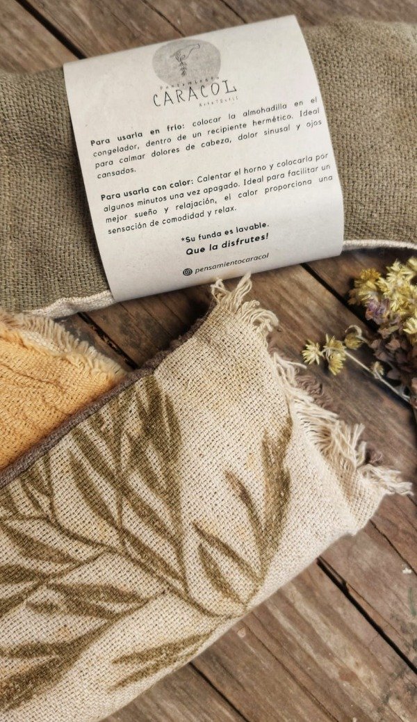 Para usarla en frío: colocar la almohadilla en el congelador, dentro de un recipiente hermético. Ideal para calmar dolores de cabeza, dolor sinusal y ojos cansados.