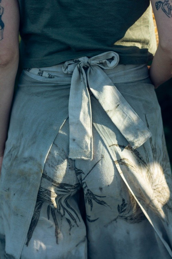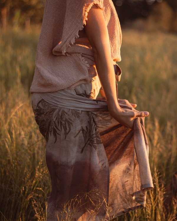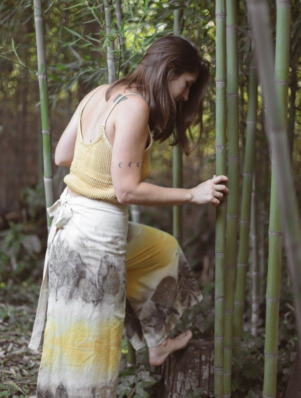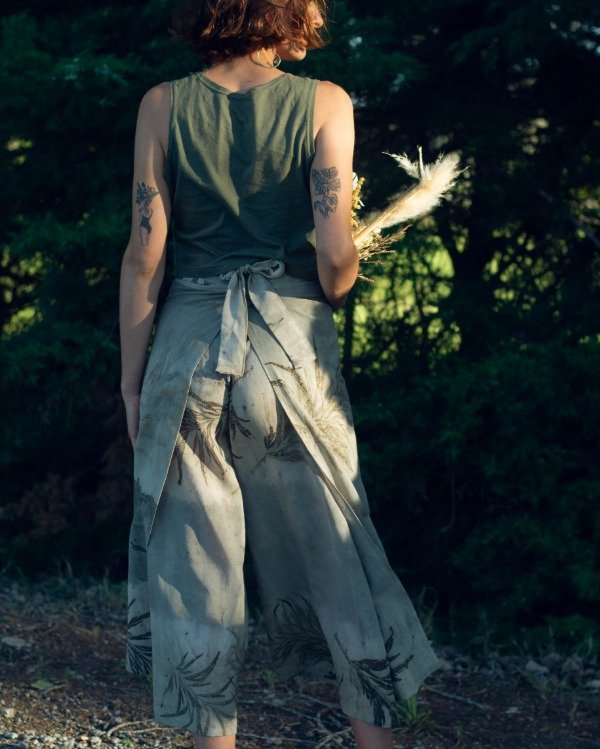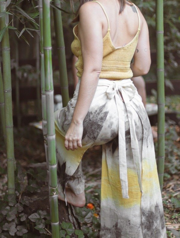 Es de puro algodón teñido y estampado con pigmentos naturales y su molderia es sin desperdicios.